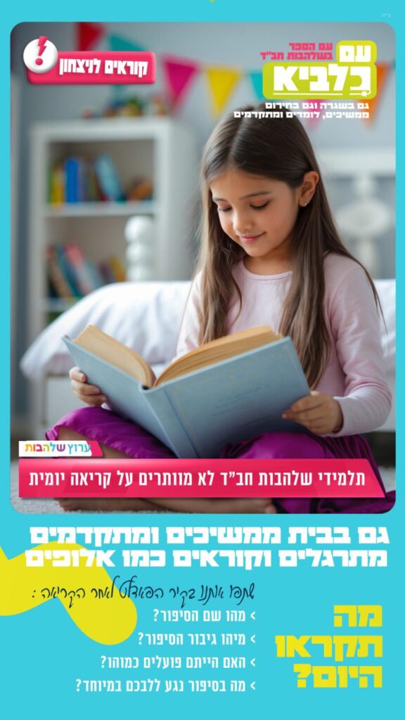 תלמידי שלהבות חב"ד לא מוותרים על קריאה יומית!בכל יום תעלה משימת קריאה חדשה.